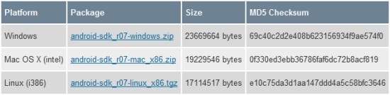 두번째 Eclipse 까지 설치를 마치셨다면 이제 마지막으로 Android SDK 설치를 하시면 즐거운(?) 개발 환경을 구축 할 수 있게 됩니다. 설치 파일을 받기 위해선 http://developer.android.com 에서 android-sdk_r07-windows.zip 을 받습니다. 물론 OS 에 따라 맞는 파일을 선택해서 받으시면 되겠죠~?!
