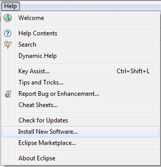 두번째 과정에서 설치 했던 Eclipse 를 실행합니다. 그리고 1. 상단 메뉴 창에 있는 Help >> Install New Software 를 클릭!